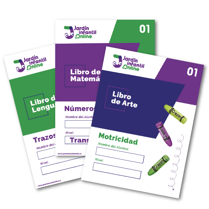 Libros de actividades desarrolladas por el jardín infantil online exclusivamente para sus alumnos, ideal para práctica de habilidades y actividades para reforzar el aprendizaje progresivo en niños de 2 a 3 años.